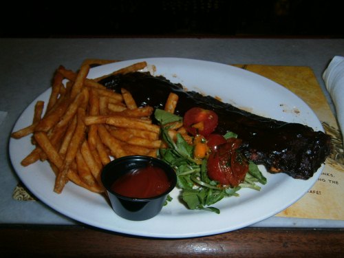 Always a sucker for more beach, and not considering my sunburns from the day before, I made my way back over again, but this time applied the sunscreen more frequently. I told myself I wouldn't try to fall asleep again on the sand and did my best from cooking my skin two days in a row. Afterwards I stopped by Jerry's Deli for a chili dog, and got the vanilla egg cream I wasn't able to get the morning before. As I was eating I started to smell a strong pungent odor of urine, then turned to my right to see a homeless lady getting ready to ask me for change. I only had big bills on me so wasn't able to give her anything. Instead she just took a few packages of sugar from one of the other tables and walked off. As she was going away I noticed she had issues keeping her pants up and they fell down on her a few times. This lady, as do most of the other homeless people in South Beach, at least have a nice tan going for themselves. It wasn't quite dinner time yet, so I headed back on over to Ocean Drive for drinks to kill time before going to that steakhouse I spotted the night before. I didn't want to go to the Clevelander again, so I first entered this other place which was playing live music. The only problem was the bar was overcrowded and the area I was in smelled like dog poop. I checked my shoes to make sure it wasn't me, and luckily it wasn't. The smell was getting bad, so I just walked out and found a quieter place that served extra large mojitos. Once the sun went down and my dinner bell began to ring, I went over to that steakhouse. The only snafu I found out once I was seated at the bar area was that they had no steaks.