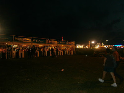 Getting to this next gas station was taking forever; red lights, idiot double-parkers, slow buses, it was real torture. Finally I arrived at the next gas station and found myself a gas pump that did what is supposed to do and disperse gasoline. After filling up the tank we took to the I-95 north up towards Connecticut and found the roads quite open and free from other vehicles. It was one of the first times in a long time I didn't encounter traffic when going north on the 95. Things were going good until the halfway point when I realized the Google directions I printed out was for the Veteran's Memorial State Park in Bridgeport, not Norwalk. Apparently, there's about a million "Veteran's Memorial State Parks" all across the United States. Luckily she had her Blackberry phone equipped with GPS map to help guide us towards the right way, but I blew the first direction from the phone and missed the exit we were supposed to get off. Getting off at the next exit, going south on the 95, getting off again, and then heading north to reach this correct exit added a nice twelve minutes to our ride and it was seeming as if we would never get to the festival as the slowly turned to darkness. I got off the correct exit eventually and was doing quite well on taking the right streets to get us where the festival was. It was only on that final turn we had to make that a police car was stationed there and directed motorists to turn the other way - yet another diversion from letting us go where we needed to go. I ended up going the way the cops directed us and took some back residential streets to find myself at another street blocked off by police. The difference this time was the festival was in view from the marina we were at and the cop informed us this was as close as we could get with our car and that we could park anywhere near by. The found a tiny street blacked out from a lack of street lights and make the ten-minute walk to the park.